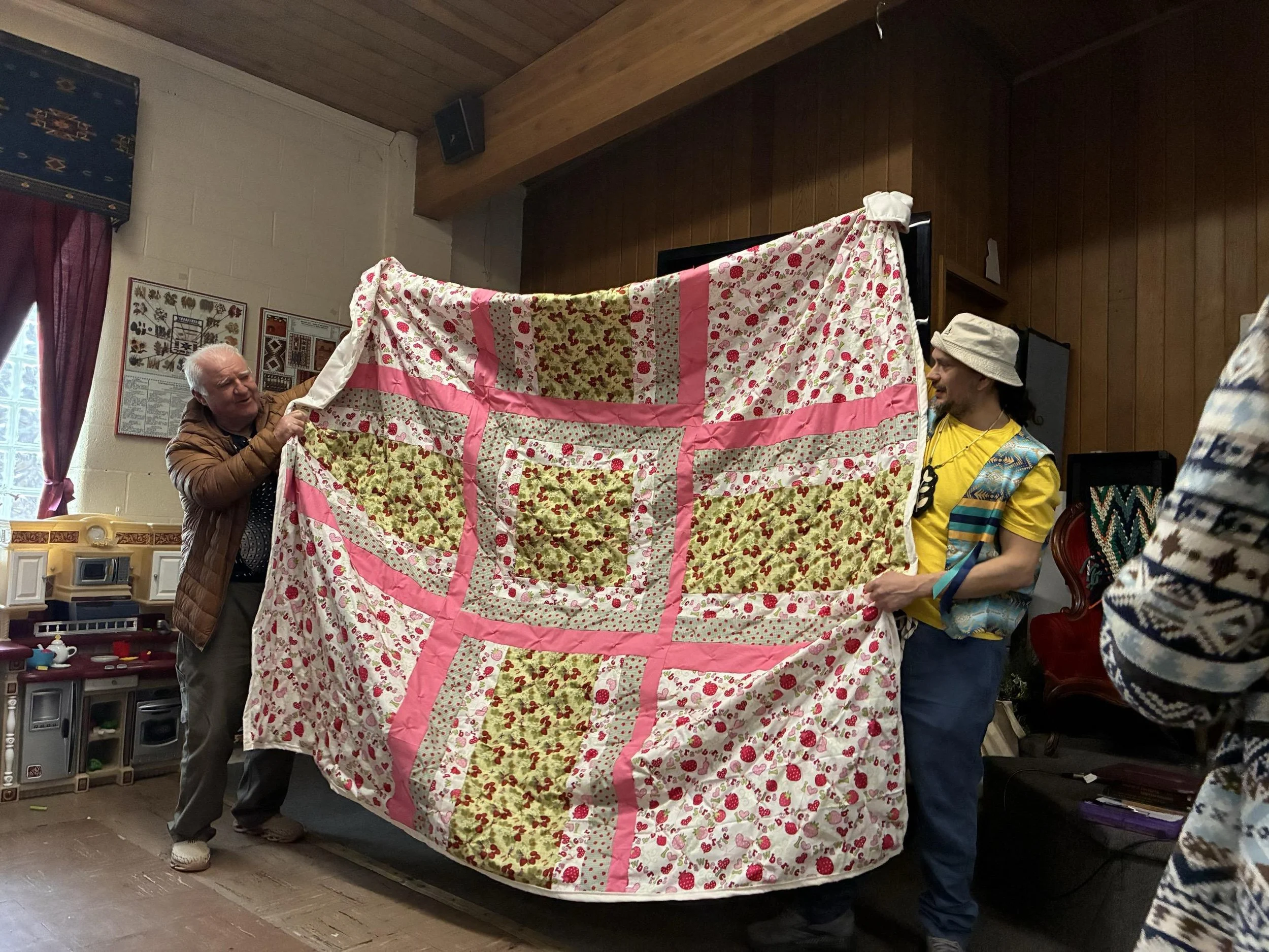 Jesse with long time friend of CRAFT, Mark Farris, the winner of this year’s quilt raffle! Our quilts are made by Grandmother Jessie Collins and are exquisitie.